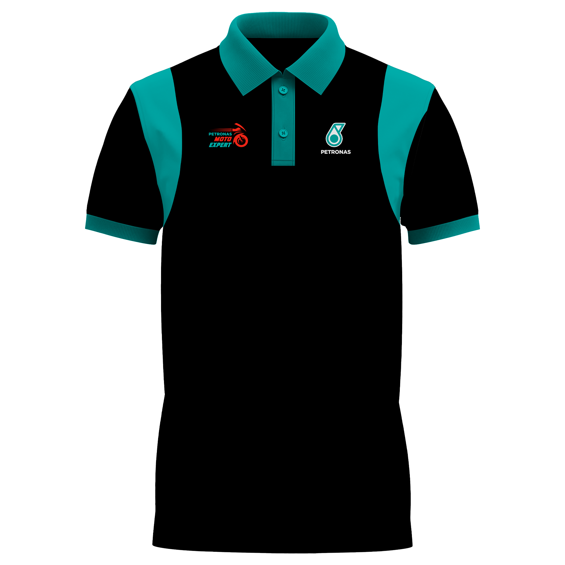 Camisa Polo Preta com detalhes Verdes e Logotipo Petronas + MotoExpert